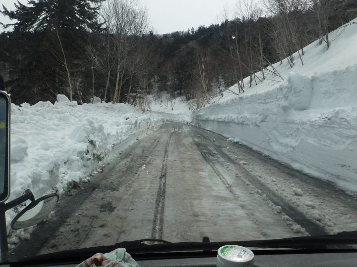 ただの除雪車でガッ!て雪を押された状態です。 私たちは山に試されています。