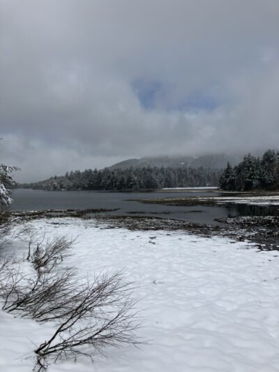 夜から降り続いた雪で湿原が真っ白になっていました。