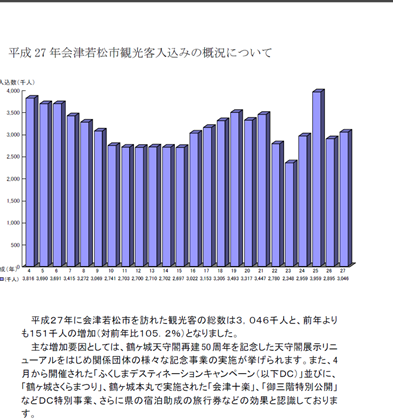 もっとも、会津若松市は歴史のある観光地で毎年3,000千人前後の観光客が訪れてくれるのです。