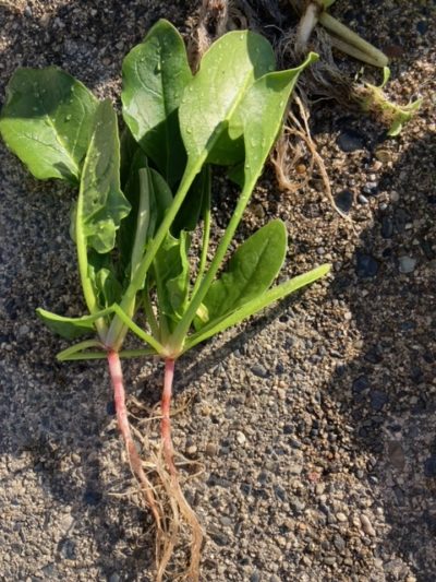 根っこにちかい部分が赤くなっていて、ほうれん草ってなんとかわかる感じです。