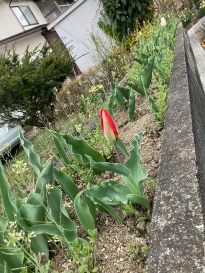 チューリップ、植えたつもりはありませんでしたが、球根さん、隠れていたんですね。