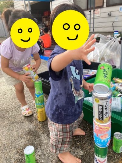缶を5個積み上げることができたら、将来入社確定とのお言葉!