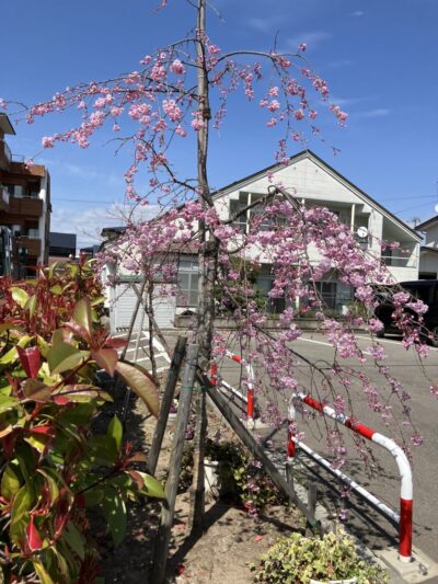 4月11日(木)ヤエベニシダレザクラ 開花宣言です