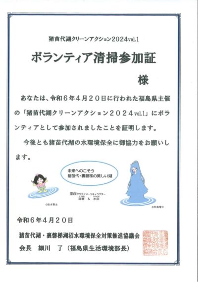 同日、猪苗代湖クリーンアクションにも参加しました。