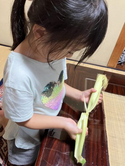 とうもろこしさんとインゲンさんです。