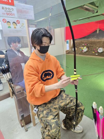 弓道体験?真剣なお顔です。
