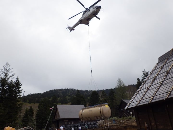国立公園内のため、空輸(大型ヘリ)により設置