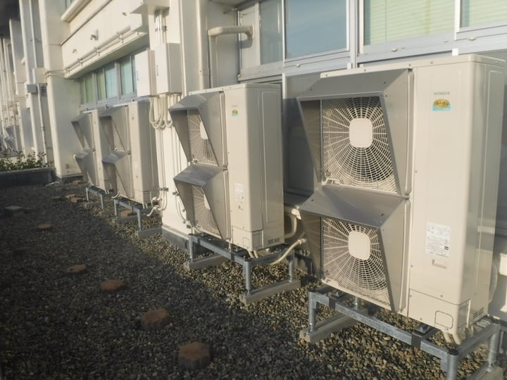 空冷式ヒートポンプエアコン室外機(若松第三中学校エントランス)